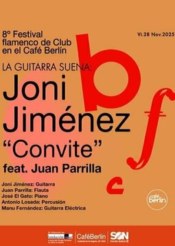 As part of the 8th Flamenco Club Festival at Café Berlín, Madrid-born guitarist Joni Jiménez presents Convite, a show born out of celebration and gratitude after winning the Bordón Minero at the Cante de Las Minas Festival 2024. With a quintet format and musical direction by Juan Parrilla, the concert is an encounter of shared energy and complicity.