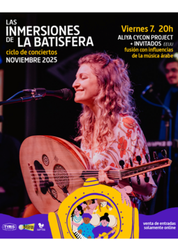 La música de la intérprete estadounidense de laúd árabe Aliya Cycon baila entre los muchos estilos de la música fusión global, con sus influencias más profundas procedentes de la música árabe. Fue la primera mujer intérprete de laúd árabe en graduarse en el Berklee College of Music de Estados Unidos en 2016 y ha realizado giras por más de diez países con sus composiciones y arreglos únicos. Sus 13 años de formación en música clásica árabe y técnica del laúd árabe se entrecruzan con su perspectiva única como mujer extranjera y viajadora, dando lugar a una música tradicional e innovadora a la vez, pero siempre profundamente auténtica. Por eso, la prestigiosa revista DownBeat describió su música como «una seductora y brillante danza entre el pop mundial y la música tradicional». Aunque algunas de sus piezas son instrumentales, también le encanta cantar letras poéticas en árabe, español e incluso ladino. La misión de la música de Aliya Cycon es transmitir el amor por la unión de las culturas a través del poder inspirador y edificante de la música. En este concierto, Aliya estará acompañada por Jean Madani al bajo eléctrico y Hussein al-Rob a la percusión árabe, y presentará sus composiciones originales, así como arreglos de famosas canciones árabes y españolas.