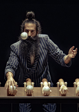 Compaña fusiona el circo con el mundo de las marionetas, creando imágenes y escenas que transportan al espectador a un mundo surrealista y onírico.