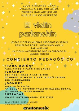 El violín parlanchín narra a través de obras de grandes compositores clásicos, las aventuras, vivencias y peripecias de un violín aventurero que ha surcado el mundo entero.