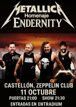 Endernity volvermos a Castellón para hacer nuestro homenaje a Metallica y además nuestro show de Endernity!! Tras la primera vez allí y por lo bien que nos tratastéis, volvemos y esta vez será un show lleno de energía y conexión con vosotros. Desdeando veros de nuevo y también ver nueva gente para que crezca la familia. No te lo pierdas porque te va a encantar.