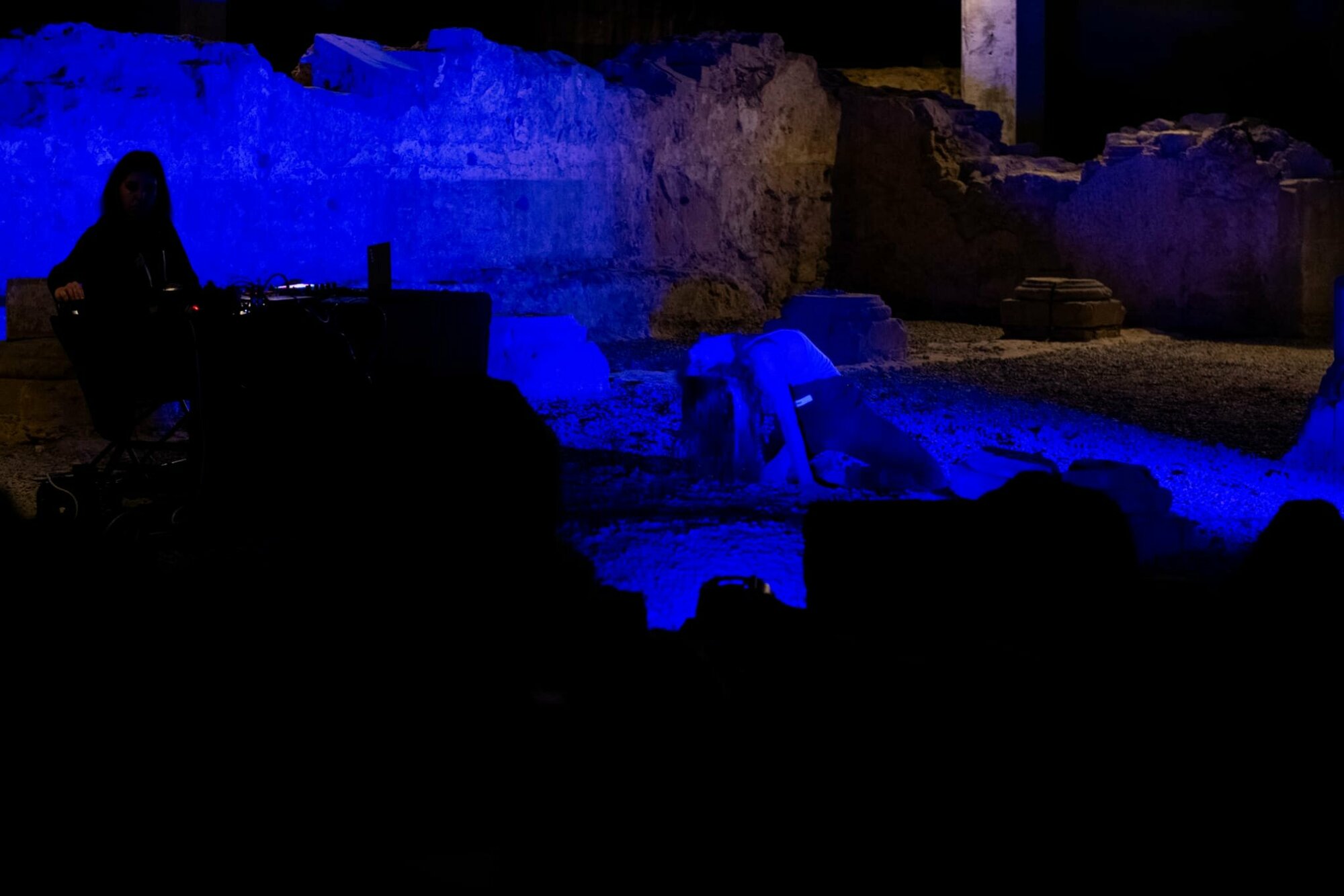 En esta interpretación de Aintzira en ORNONERA acompaña en escena los sonidos crudos de Genoveva Ferrocide con sus instrumentos forjados de hierro con los que conducirá el sonido.