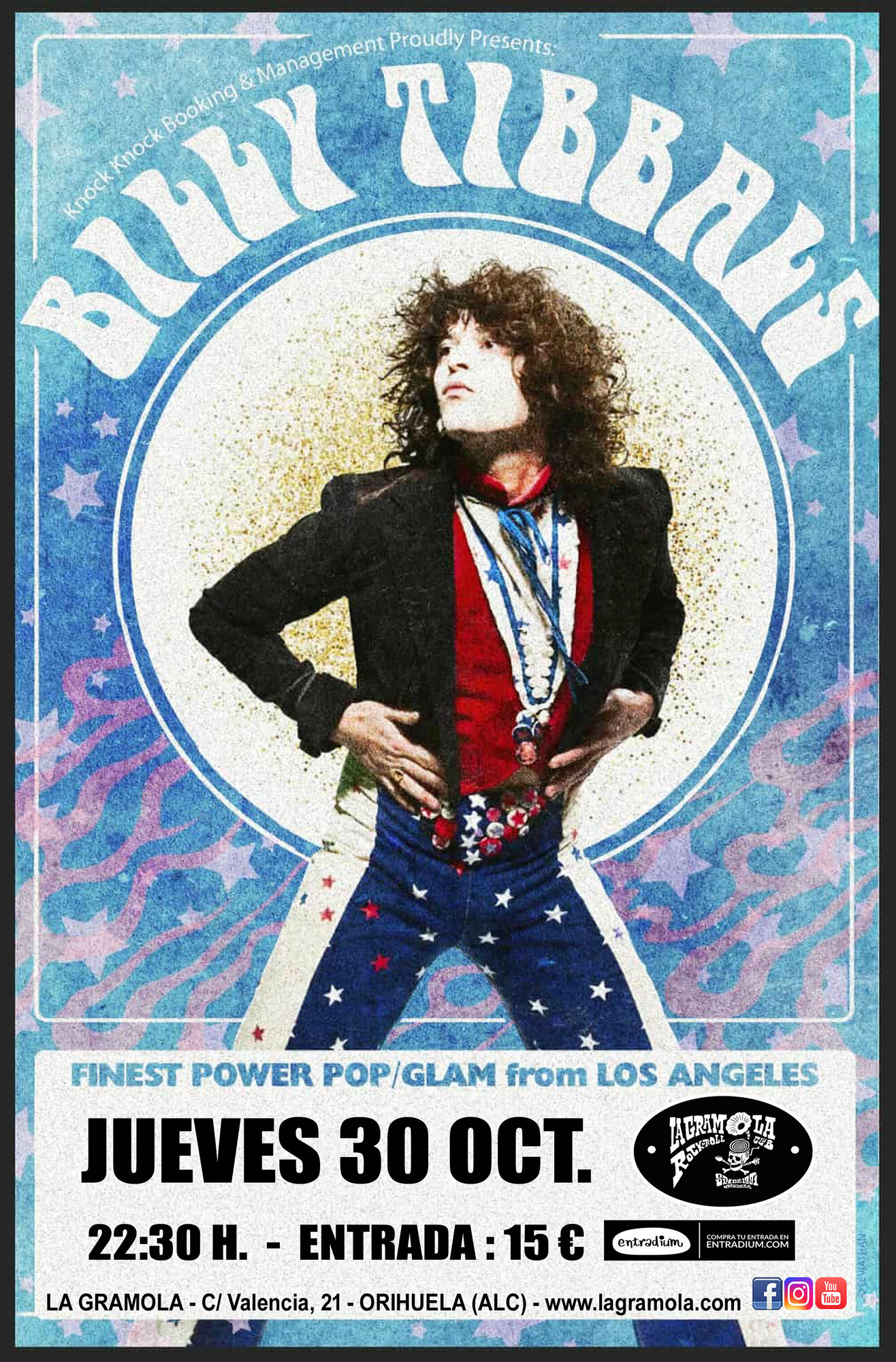 Londinense afincado en Los Angeles (USA) ha emergido rápidamente como una de las grandes esperanzas jóvenes de la escena musical alternativa de Los Ángeles. Extravagante e innovador, Tibbals es conocido por hacer una peculiar propuesta de Glam Rock/Power Pop. Ha teloneado en varias ocasiones a The Black Crowes y según su cantante Chris Robinson “ Billy tiene el sueño del Rock&Roll en sus ojos, polvo de estrellas en sus manos, una cabeza llena de música y la pista de baile a sus pies”. En esta gira viene acompañado con su banda de la que forman parte tres miembros de los angelinos "Uni Boys".