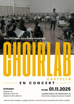 ChoirLab Castelló és un taller coral de música moderna en el qual els participants podran explotar el seu costat musical i gaudir l'experiència de cantar en grup damunt d'un escenari. En esta tercera edició del taller tornarem a oferir un repertori original, variat i divertit per al gaudi de tots els assistents.