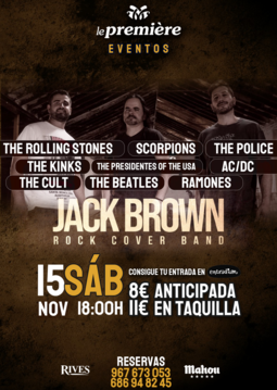 No te pierdas esta maravillosa tarde de música en Le Premiére con el Concierto de Jack Brown, Rock Cover Band, una banda de versiones de grandes éxitos del rock, pop- rock, pop y soul internacional desde los años 60 hasta hoy en un formato power trio.