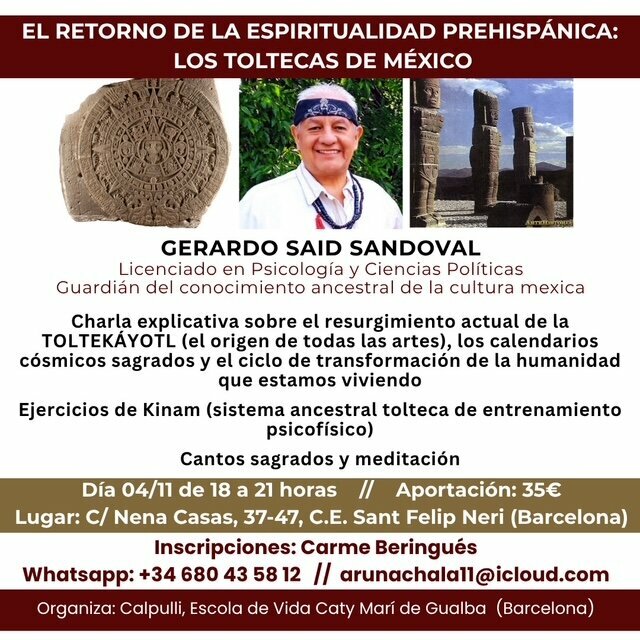 Charla explicativa sobre el resurgimiento actual de la TOLTEKÁYOTL (el origen de todas las artes), los calendarios cósmicos sagrados y el ciclo de transformación de la humanidad que estamos viviendo.