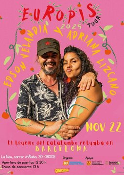 Los reconocidos artistas colombianos Edson Velandia —músico, compositor y escritor, que fusiona folclor, rock y trova, creador de su propio estilo llamado RASQA— y Adriana Lizcano —abogada, activista y artista colombiana, cocreadora del Festival de la Tigra y parte del dúo con Edson— estarán de gira por Europa. Durante su paso por Barcelona, Catalunya, el 22 de noviembre en la Nau ofrecerán un concierto especial en solidaridad con el Catatumbo, Colombia.