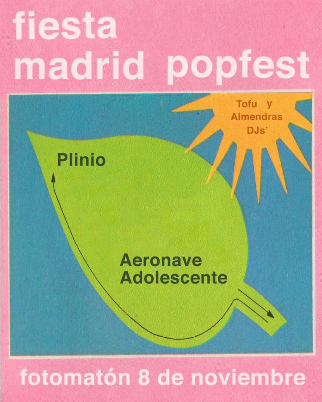 Sábado 8 de noviembre de 2026, fiesta de presentación de Madrid Popfest 2026, con Plinio y Aeronave Adolescente en el Fotomatón. 20:30 apertura de puertas. Tras los conciertos Tofu y Almendras Djs.