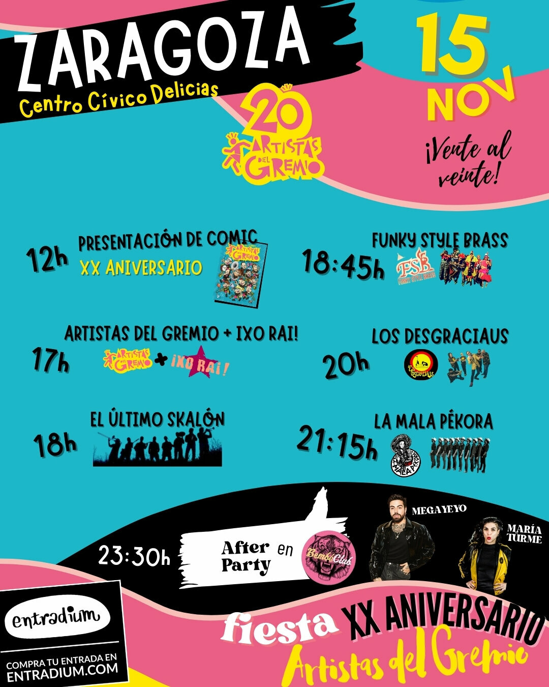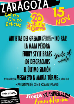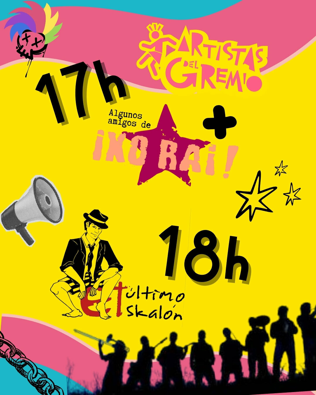 17:00h Concierto especial de Artistas del Gremio (sí, nosotros. Pero mola hablar en tercera persona) y su ¡Jódete y baila, zagal! en homenaje a IXO RAI! que ya te adelantamos que también se van a homenajear a ellos mismos porque unos cuantos se vienen a colaborar al fiestote (¡Ay, qué ilusión, copón!).