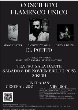 Noche de flamenco unica con el gran Antonio vargas el POTITO uno de los más grandes del panorama del cante flamenco en palma de mallorca para todos ustedes.