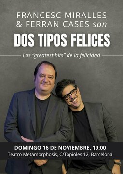 Un cabaret filosófico lleno de sorpresas de la mano de Francesc Miralles & Ferran Cases, dos expertos en desarrollo personal que en cada sesión abordarán un tema distinto con amor y humor, aderezado con revelaciones personales, anécdotas, música, canciones, recomendaciones literarias, así como consultas del público en directo. Una velada mágica para recargar las pilas de la esperanza y la creatividad.