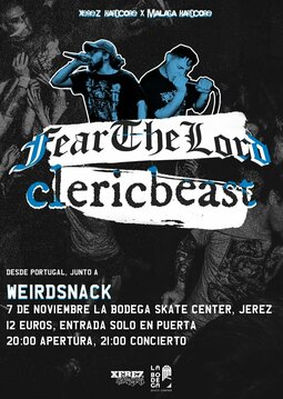 En el pasado solíamos ir a por toallas pero eso ya es historia, Portugal ahora exporta hardcore del más fino hilo. El 7 de noviembre Fear the lord y Clericbeast estarán echando el finde por tierras andaluzas para dejar claro que por sus tierras no se andan con tonterías y las cosas se hacen bien.
