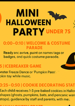 - Dos horas de diversión de Halloween para pequeños monstruos menores de 7 años.