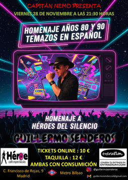 * Preparaos para una explosión de nostalgia y pura energía en la Sala Héroe de Madrid. ¡Guillermo Senderos os trae una noche espectacular que no querrán perderse!