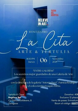 2º Encuentro La Cita - Arte, tertulia y aperitivo: "ENTRE GALERÍAS" los secretos mejor guardados de una Galería de Arte. Contaremos con la Directora de la galería "Antonia Puyó" Patricia Rodrigo y con el colecconista Joaquín Zurita.