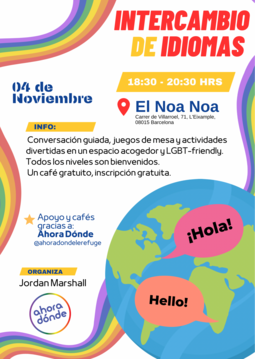 El próximo 04 de Noviembre participa en nuestro primer evento gratuito de intercambio de idiomas