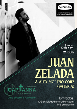Juan Zelada, músico reconocido internacionalmente y una de las voces más auténticas del panorama nacional, llega a Capitanna de la Sierra para ofrecer un concierto íntimo y lleno de alma, acompañado por Alex Moreno-Corz a la batería. Con un estilo que se mueve con naturalidad entre el blues, el soul, el jazz y el pop, Zelada nos invita a un viaje musical lleno de energía, emoción y elegancia.