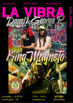 El carisma y la fuerza de King Magneto compartirán escenario con la fusión vibrante de Danel & George Palmer, capaces de pasar del verso más crudo a las melodías más profundas. Y para rematar, Seven Yard traerá el sonido del gueto con ritmos jamaicanos que harán temblar la pista.