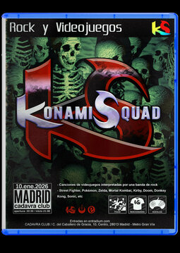Concierto debut de KONAMI SQUAD, banda de rock afincada en Madrid que interpreta canciones de videojuegos. Desde Sonic hasta Mortal Kombat, desde Donkey Kong hasta Doom, todo con la esencia de la música alternativa de guitarras, de donde vienen sus 3 miembros: Samuel Barranco (XpresidentX, Def Con Dos), Manolo Parra y Pinneapple Jess.
