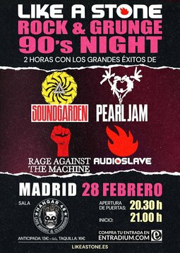 ¡2 HORAS DE CONCIERTO CON LOS GRANDES ÉXITOS DE PEARL JAM, AUDIOSLAVE, SOUNDGARDEN Y RAGE AGAINST THE MACHINE con el show LIKE A STONE ROCK&GRUNGE 90's NIGHT!