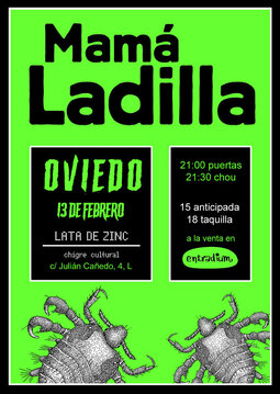 Mamá ladilla sigue presentando Exhuma y sigue, sin dejar nunca de remover su fondo de armario para variar siempre el repertorio de directo. Estaremos escupiendo nuestras canciones en la Sala Lata de Zinc