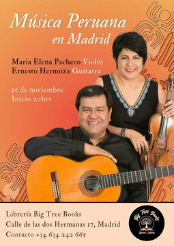Este 15 de noviembre viviremos una noche especial en Madrid, donde la violinista María Elena Pacheco y el guitarrista Ernesto Hermoza nos regalarán el alma de la música peruana