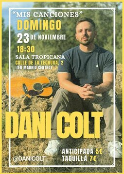Dani Colt, cantautor del 97, da su primer concierto de temas originales. En él, nos interpretará sus canciones e intentará llevarnos a través de su universo interno.