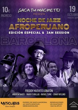 Saca tu Machete es colectivo de músicos de larga trayectoria, residentes en Barcelona que cultivan y desarrolla la conjunción de los ritmos de la diáspora de Afro peruana con el jazz. conformando la alquimia perfecta con un invitado de lujo, Freddy Huevito Lobaton. Musico, percusionista, compositor, zapateador. Una leyenda musical de la cultura afro peruana. Que llega por primera vez a Europa con la ruta afro peruana.