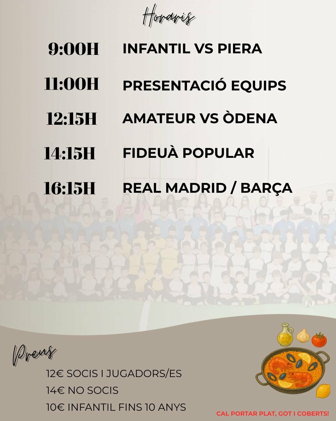 - 14:15h Fideuà Popular - PISTA MULTIESPORTIVA