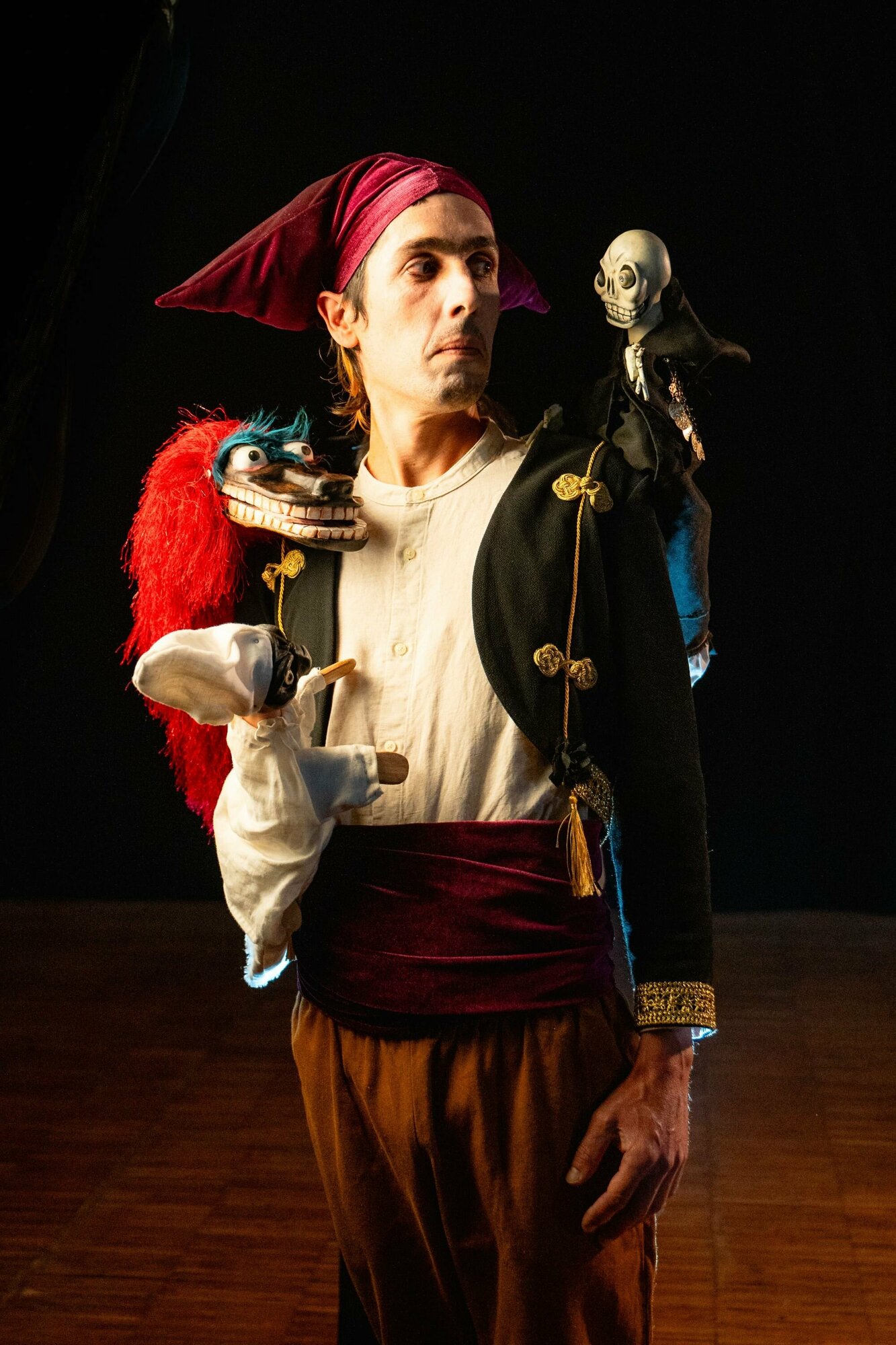 Pulcinella nos comparte su modo propio de vivir la vida, llena de vitalismo, libertad e incansable y original ante las dificultades y pruebas que el camino de la vida le brinda. Conceptos como el amor, el poder, el egoísmo, la traición, la vida y la muerte se convierten en ejes de una historia transmitida con pocas palabras y mucha acción, a través de un humor hilarante, un ritmo trepidante y música en directo, donde no solo lxs pequeñxs, sino también lxs adultxs, podrán conectar y disfrutar con su ser más sensible e inocente la magia de los títeres en su más puro estilo y esencia.