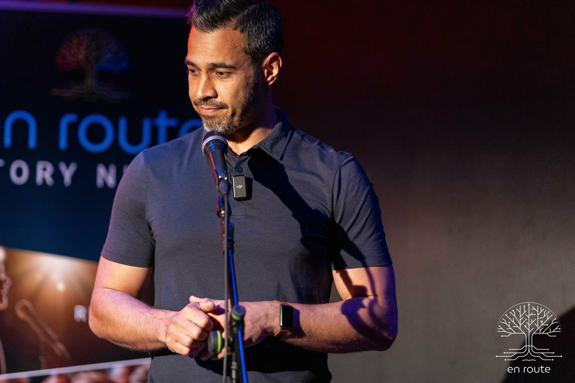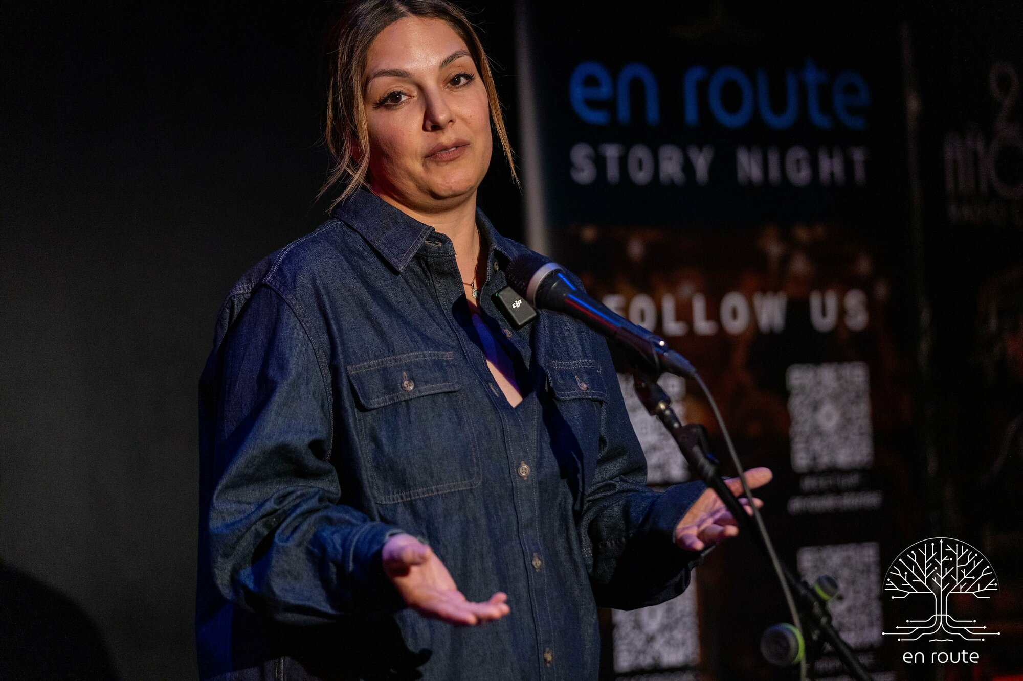 Besides 3 invited storytellers, at the En Route Story Jam members from the audience can throw their name in a hat and get on stage to tell a story on stage.