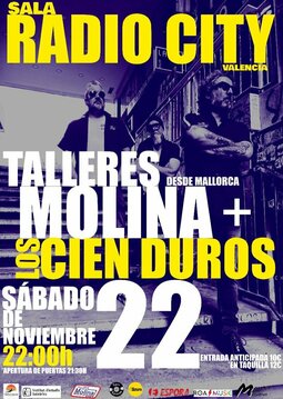 Noche de doblete Rock en RADIO CITY VLC con Talleres Molina y Los Cien Duros la próxima noche del 22 de noviembre a las 22h.
