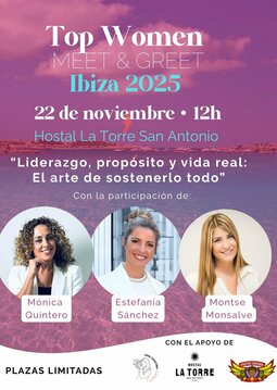 El sábado 22 de noviembre celebraremos Top Women Meet and Greet Ibiza, un encuentro diseñado para compartir, inspirarnos y conectar desde lo real, más allá de los cargos o las etiquetas.