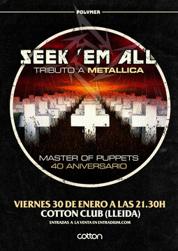 Master Of Puppets no solo está considerada la gran obra de Metallica sino que además es uno de los discos definitivos, y más influyentes, de la historia del metal. En el 2026 se cumplirán 40 años de su edición y sus canciones, entre ellas ‘Battery’, ‘Master Of Puppets’ o ‘Damage, Inc’ suena tan frescas y vigentes como el primer días. Para celebrar estos 40 años, Seek’Em All estarán celebrándolo en diferentes conciertos tocado todo el álbum de principio a fin.