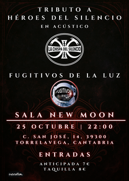 #LaChispaDelSilencio #FugitivosDeLaLuz #HeroesDelSilencio #Tributo #Concierto #Torrelavega #SalaNewMoon #RockEnDirecto #MusicaEnVivo #RockEnEspañol #Acustico #Cantabria