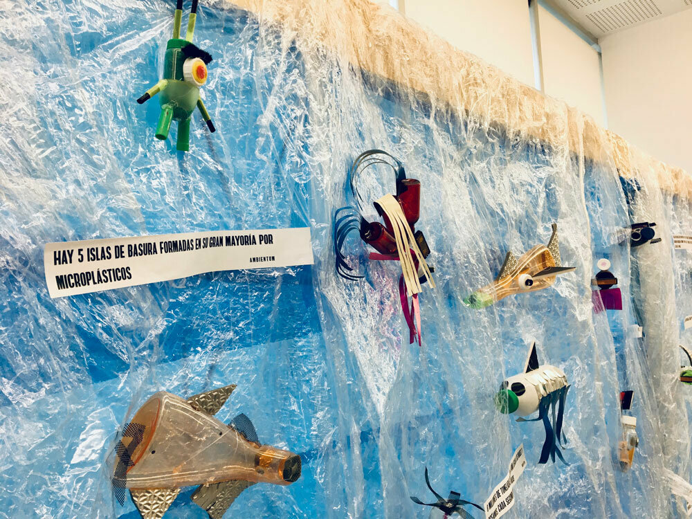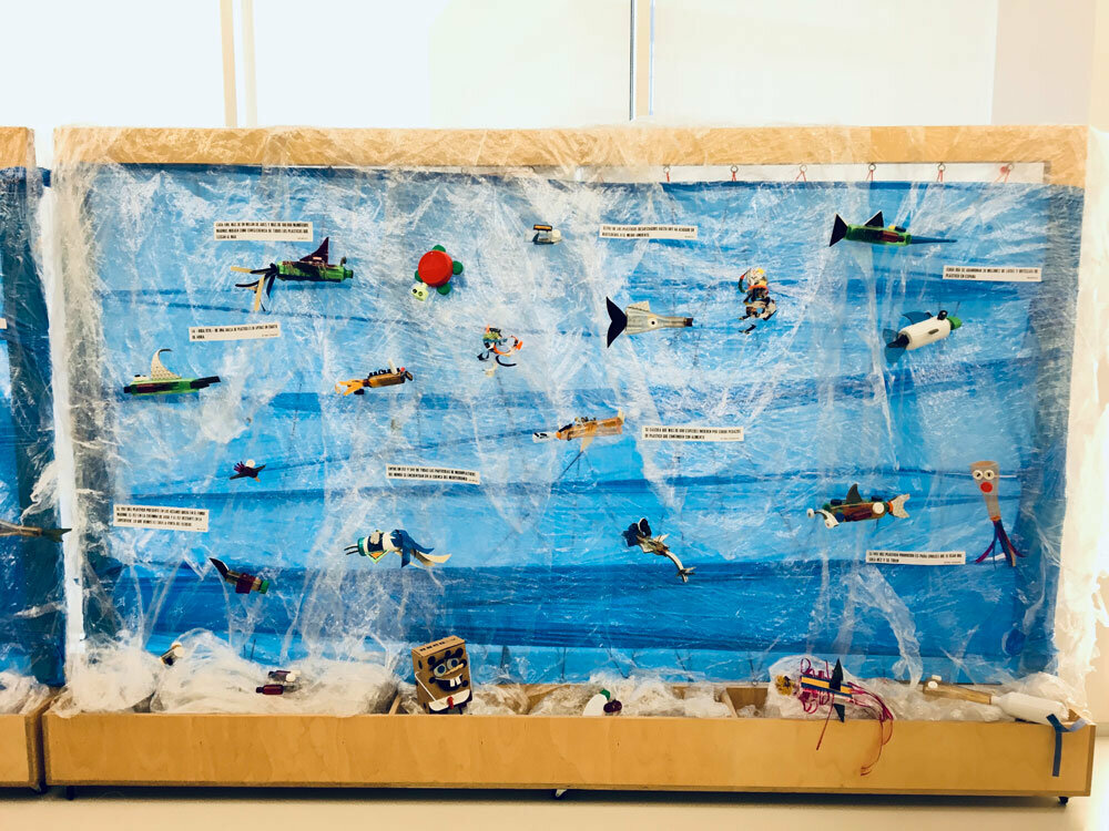 Un espacio para visibilizar esta problemática, realizando seres marinos a través de plásticos reutilizados y acompañando la instalación y el taller con datos sobre el plástico en el mar.