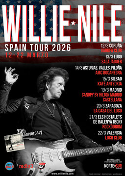 Desde hace casi dos décadas Willie Nile ha recorrido nuestro país en muchas giras recabando el aprecio y entusiasmo de una legión de seguidores que no faltan a sus conciertos. Le acompaña la banda en España, los Stormy Mondays, es decir, Dany Montgomery en la batería, Juanjo Zamorano en el bajo y coros, y su fiel escudero Jorge Otero, guitarras y coros.