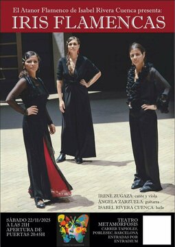 Iris Flamencas es una creación artística flamenca integrada por mujeres: IRENE ZUGAZA (cantante y viola), ISABEL RIVERA (baile) y ANGELA ZARZUELA (guitarra).