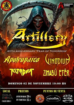 Prepárate para una noche demoledora de thrash, metal extremo y energía pura en Málaga, porque ARTILLERY, una de las leyendas del thrash metal danés, aterriza en la ciudad este domingo 2 de noviembre como parte de su gira internacional. Con más de 40 años de trayectoria, riffs afilados y una energía que desafía el tiempo, Artillery promete una descarga inolvidable para todos los amantes del metal.