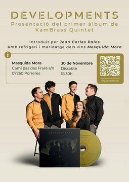 "Developments" és el reflex, l'aprenentatge i desenvolupament de sis anys des de la creació de KamBrass Quintet. Composicions i arranjaments que ens han acompanyat des dels inicis i d’altres que, tot i el seu recent descobriment, ens han captivat com les primeres. En l'acte es podran sentir algunes de les obres que formen part d’aquest àlbum, així com un diàleg amb Joan Carles Palos que ajudarà a entendre millor qui som i com hem arribat fins aquí.