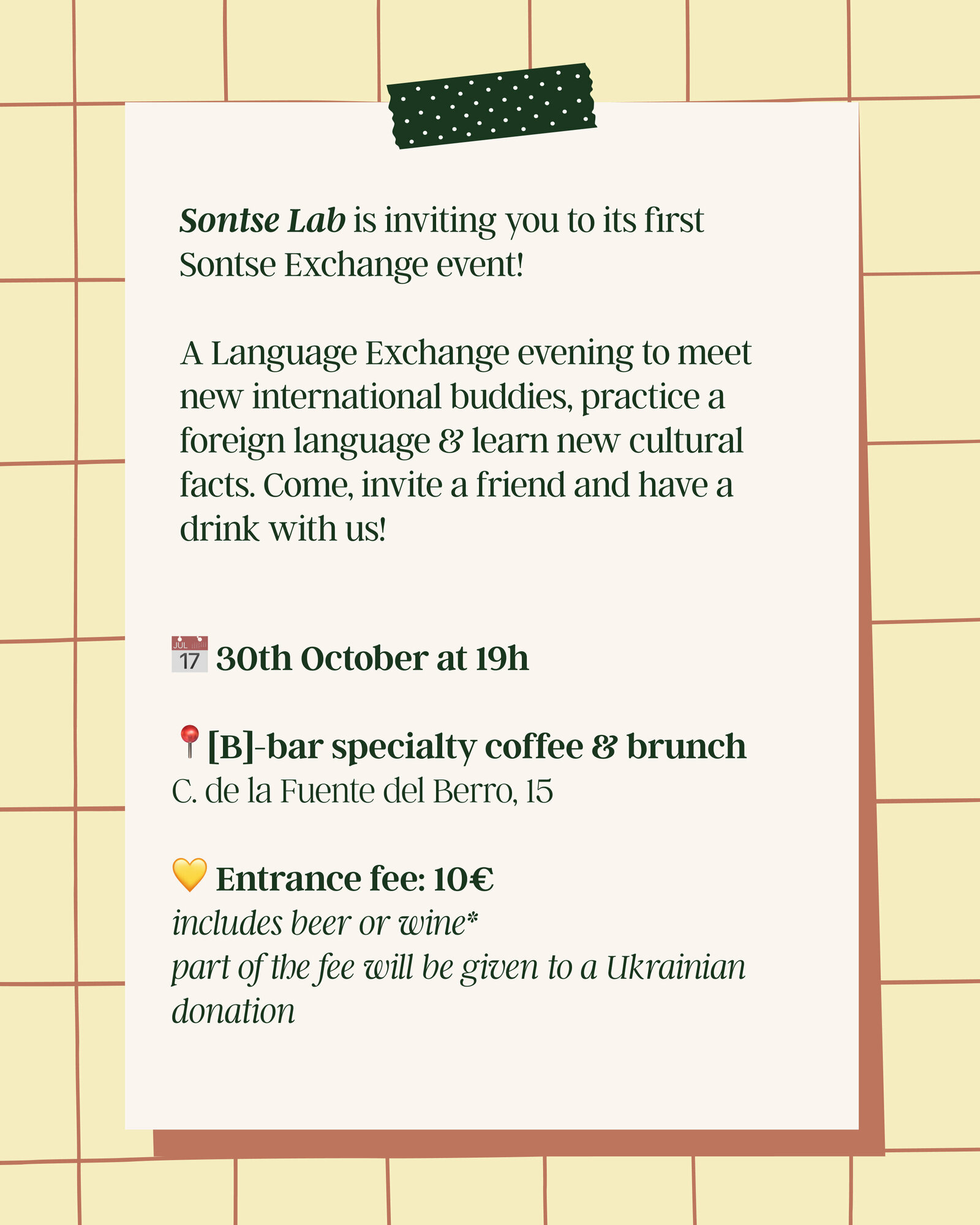 Ven a nuestro primer Sontse Language Exchange en Madrid