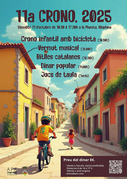 Dins els actes de la Festa Major de Vilaplana, l’AFA Cingle Roig organitza un dels esdeveniments més esperats pels petits: la CRONO! Una divertida activitat on els nens i nenes podran participar en una cursa amb bicicleta per un dels tres circuits adaptats segons la seva edat.